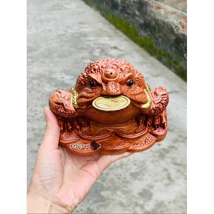 Cóc ngậm đồng tiền vàng bằng gỗ hương đá kt 20×16×13cm
