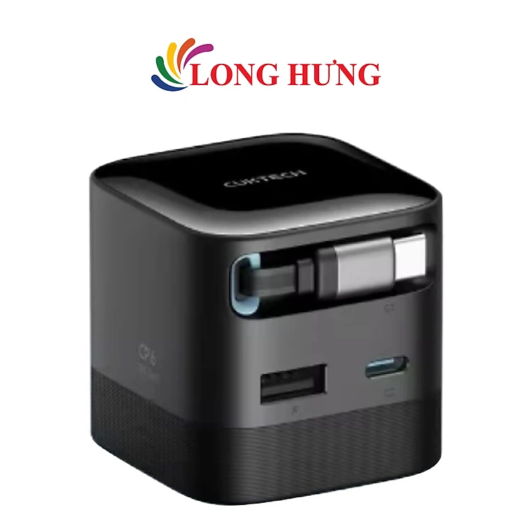 Cốc sạc Cuktech GaN Built-in USB-C Cable 1USB 2Type-C 67W CP6 AD653W - Hàng chính hãng