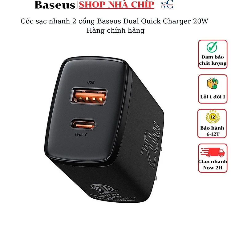 Cốc sạc nhanh Baseus Dual Quick Charger 20W - Hàng chính hãng