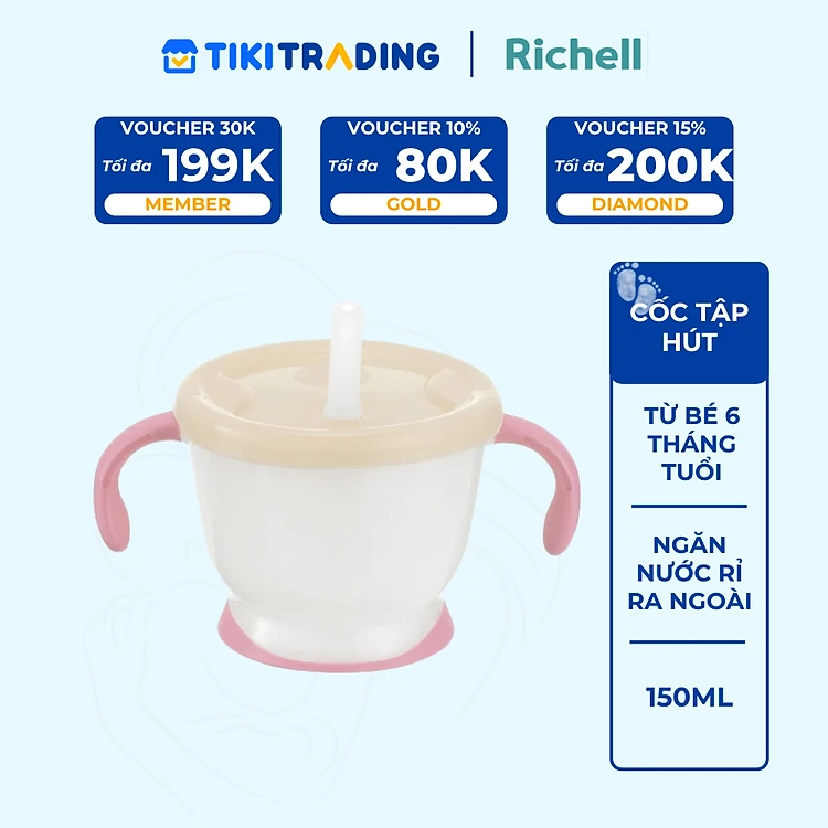 Cốc tập hút, tập uống 3 giai đoạn cho bé RICHELL Nhật AQ phiên bản châu Á | Baby 6m+ 150ml