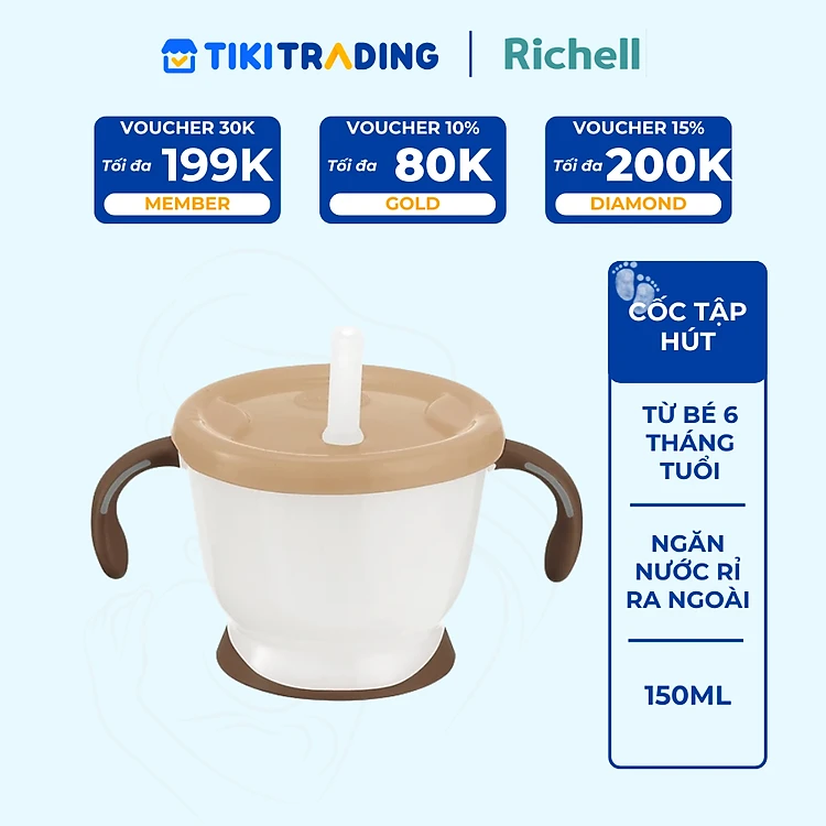 Cốc tập hút, tập uống 3 giai đoạn cho bé RICHELL Nhật AQ phiên bản châu Á | Baby 6m+ 150ml
