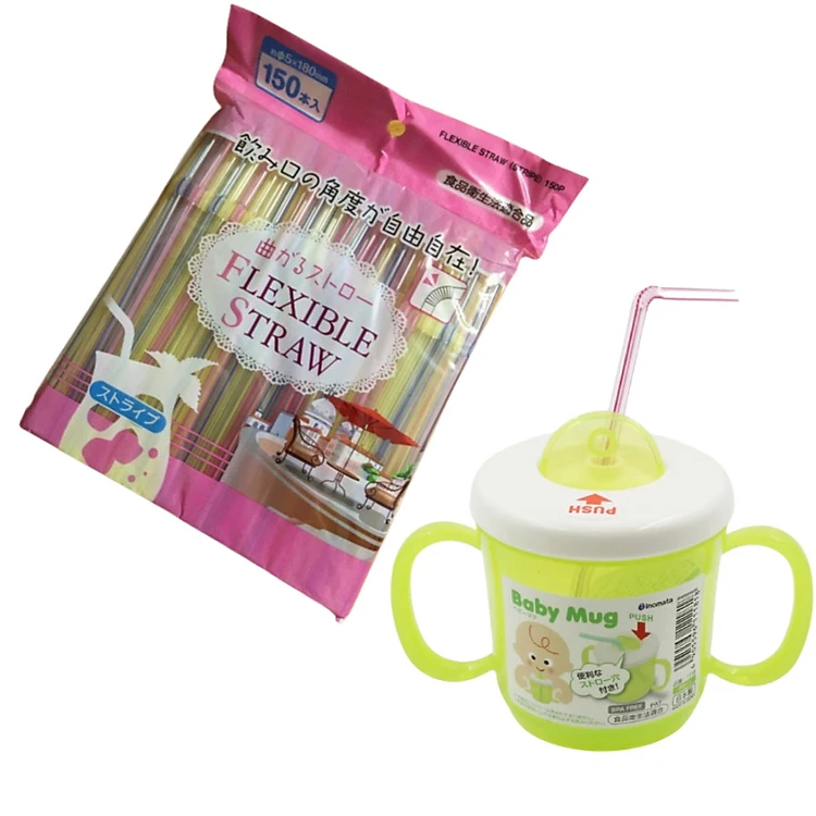 Cốc tập uống có lỗ cắm ống hút 210ml kèm 150 ống hút nhựa PP an toàn