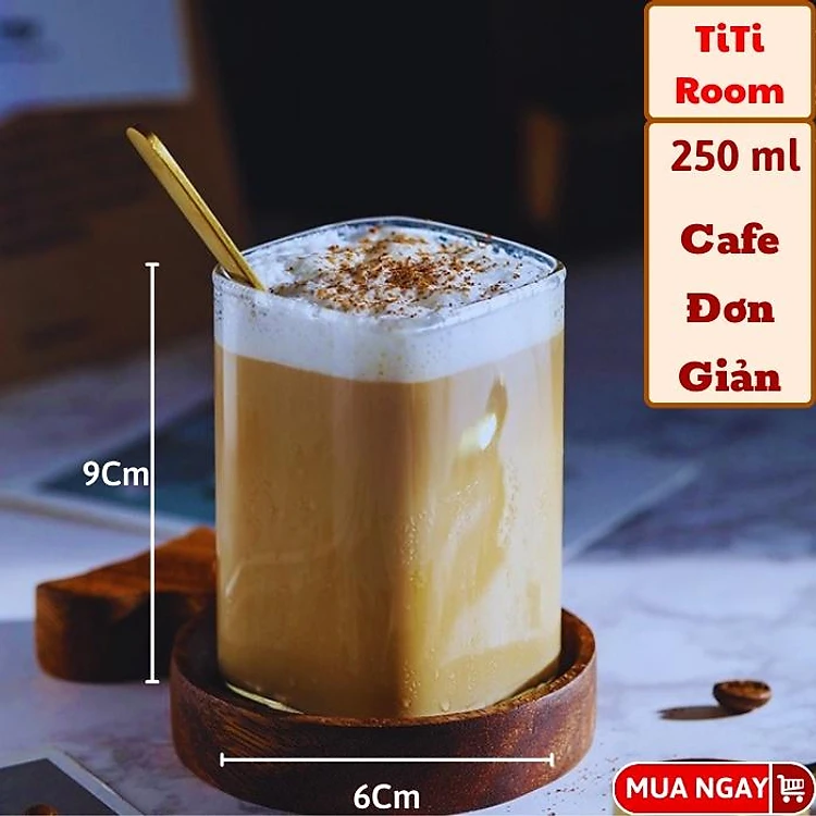 Cốc thủy tinh sạch vuông trong suốt dễ thương chịu nhiệt cao dùng pha cà phê, Ly thủy tinh uống sinh tố titiroom