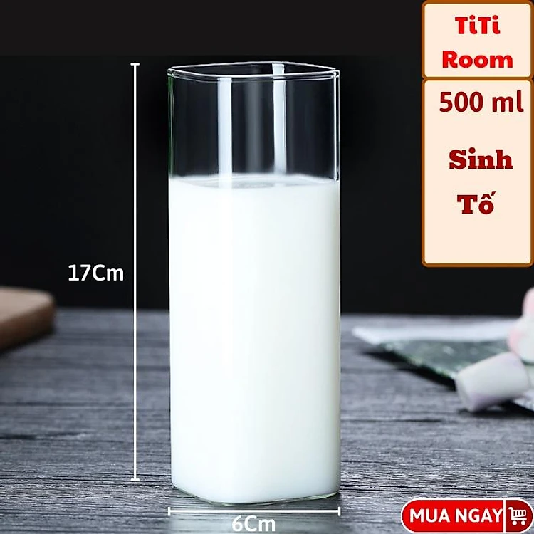 Cốc thủy tinh sạch vuông trong suốt dễ thương chịu nhiệt cao dùng pha cà phê, Ly thủy tinh uống sinh tố titiroom