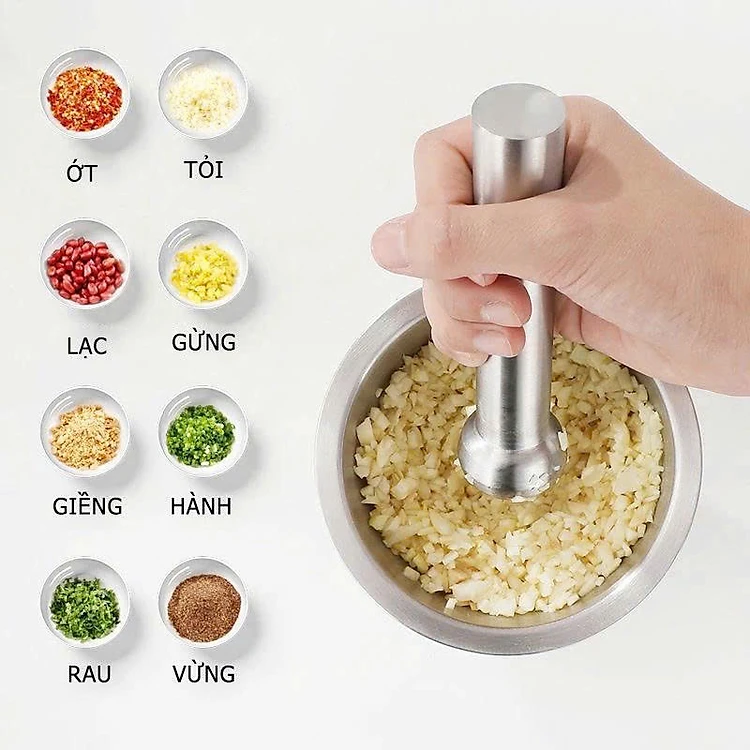 Cối Chày Inox 304 Cao Cấp , Đâm Tiêu , Giã Tỏi, Giã Cua, Có Nắp Đậy, Đế Chống Trượt , Size 10cm