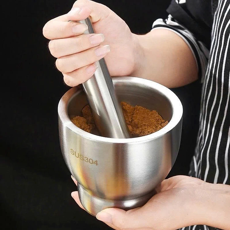 Cối chày inox 304 cao cấp đúc nguyên khối - Kèm nắp đậy , dùng giã hành tỏi, ớt, cua , dày dặn, không bám mùi, dễ vệ sinh - Size 10cm