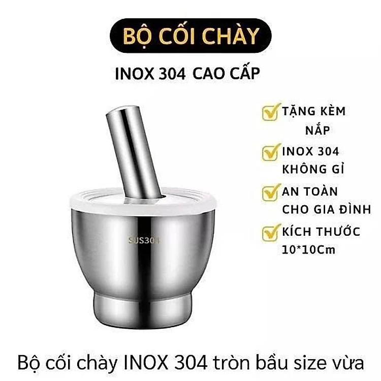 Cối Chày Inox 304 Có Nắp Đậy Cao Cấp – Giã Tỏi Ớt, Gia Vị, Thực Phẩm Nhanh Chóng, Sạch Sẽ Size 10cm
