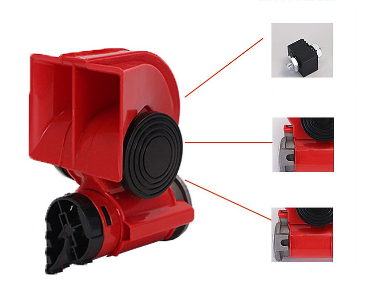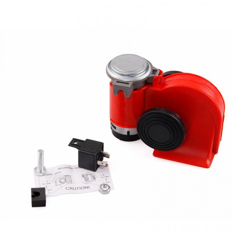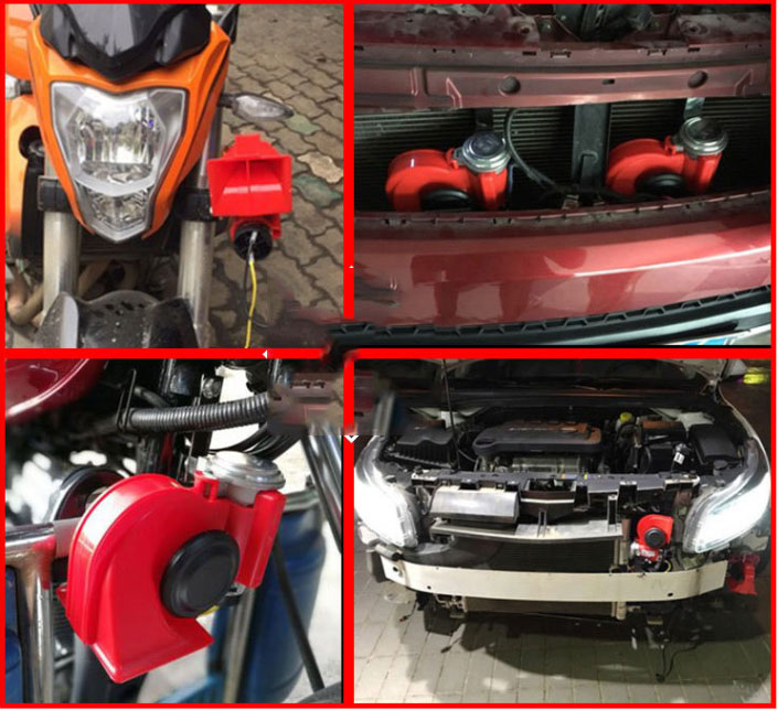 Gồm hai âm thanh lớn và nhỏ gọn này có thiết kế một mảnh không cần ống, và cài đặt trong vài phút với một bu lông sử dụng dây còi. Bao gồm một máy nén thép và còi nhựa đỏ chịu va đập cao, cộng với phần cứng gắn và Rơle Rất phù hợp cho xe máy và tất cả các loại xe có hệ thống 12V