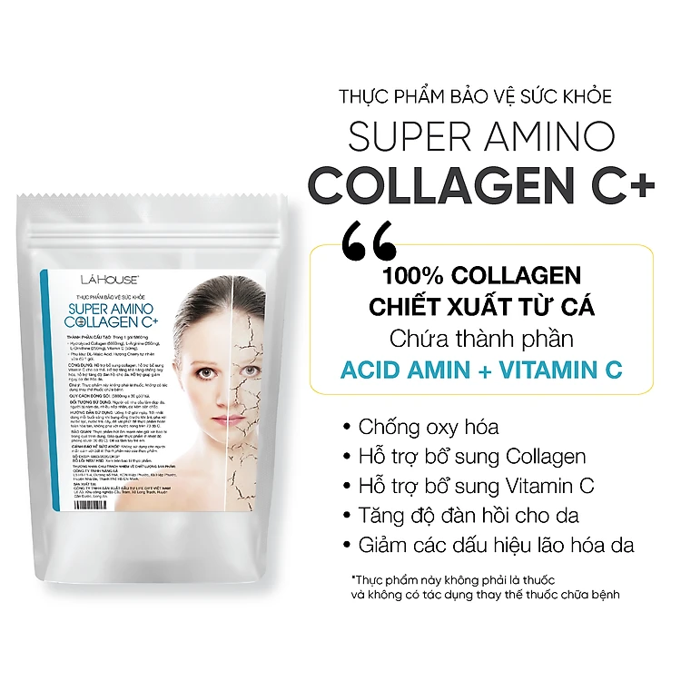 Collagen bổ sung Vitamin C tăng khả năng chống oxy hóa Lá House Pure Amino Collagen C+ (6.5g*30gói)