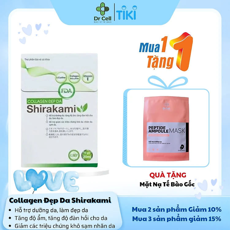 Collagen Đẹp Da Shirakami DR CELL - hộp 10 gói x 20ml hỗ trợ làm đẹp da tăng đàn hồi cho da cải thiện nội tiết tố - Hàng Chính Hãng