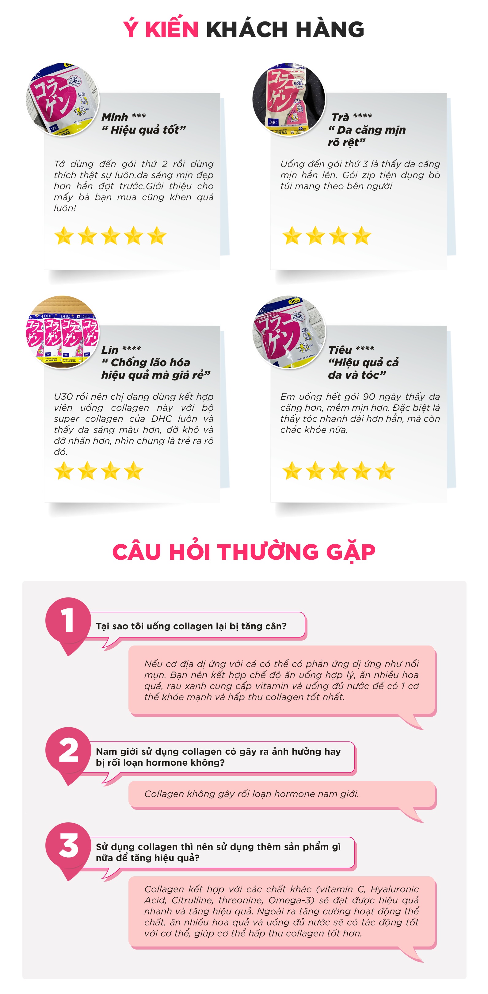 3. Công dụng: Bổ sung collagen cho cơ thể, hỗ trợ tăng khả năng đàn hồi của da, giúp da săn chắc, căng mịn.