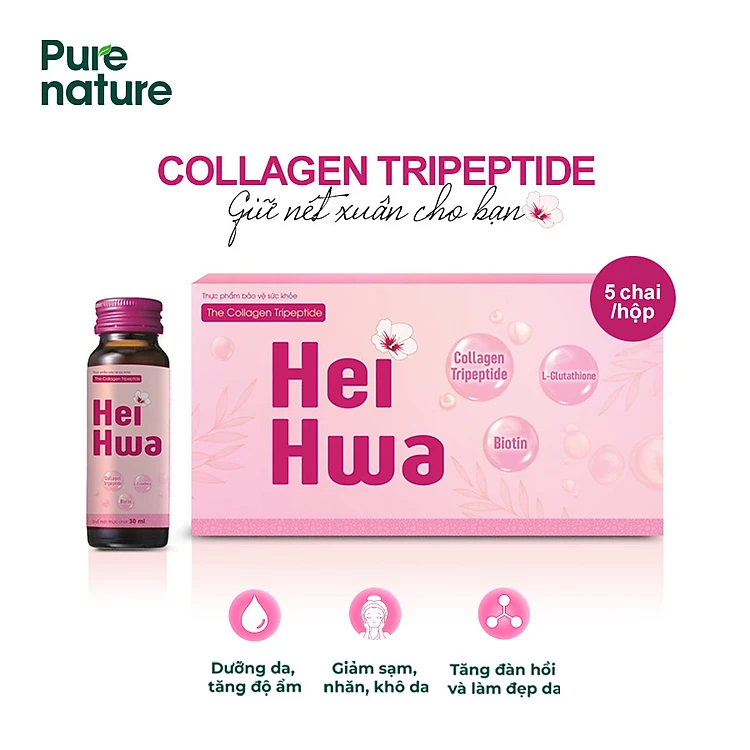 Collagen HeiHwa Dạng nước 1.500mg Collagen Tripeptide nhập khẩu từ Hàn Quốc, hấp thu nhanh giúp đẹp - Hộp 5 chai 30ML