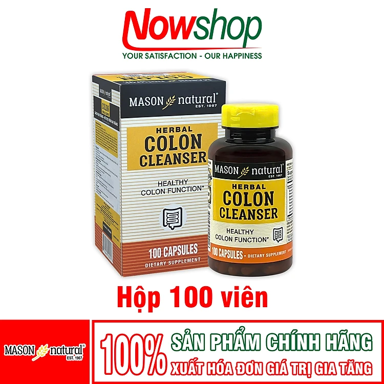 Colon Cleanser Mason Natural Hộp 100 viên làm sạch đại tràng giảm đầy hơi tiêu hóa khỏe ngừa táo bón