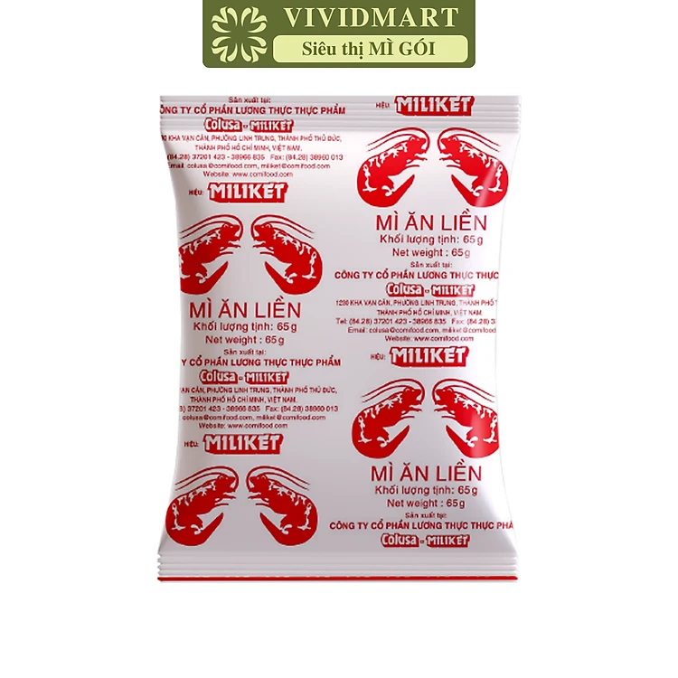 COLUSA - Mì Miliket gói giấy trắng hương vị Tôm, Mì tôm gói giấy trắng Miliket, Mì giấy Miliket (65g/gói)