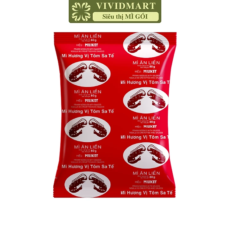 COLUSA - Mì Miliket Tôm Đỏ gói vị Tôm sa tế, Mì tôm sa tế Tôm Đỏ Miliket, Mì giấy Miliket Colusa (80g/gói)