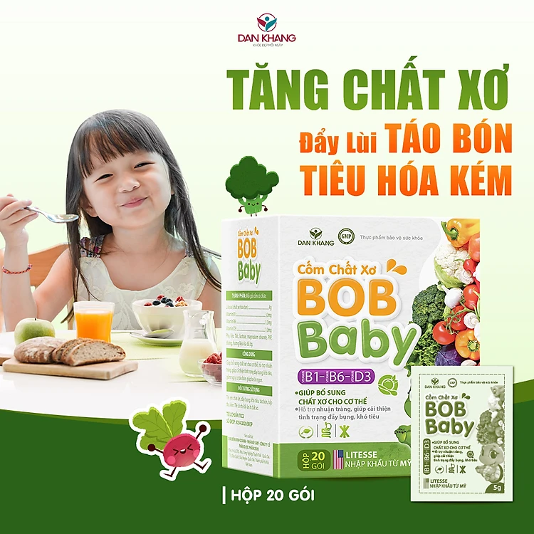 Cốm bổ sung chất xơ cho bé BobBaby Dân Khang hỗ trợ tiêu hóa giảm táo bón hộp 20 gói