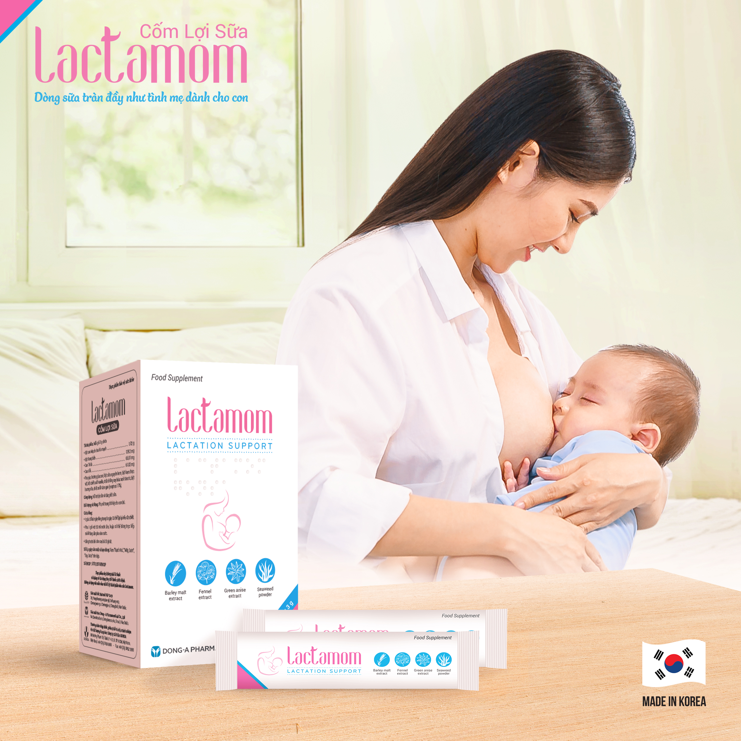 Thấu hiểu được điều đó, các nhà khoa học Hàn Quốc đã nghiên cứu và cho ra đời dòng Cốm Lợi Sữa Lactamom giúp hỡ trợ tăng tiết sữa, hỗ trợ lợi sữa ngay sau khi sinh và duy trì trong suốt thời gian cho cọn bú.
