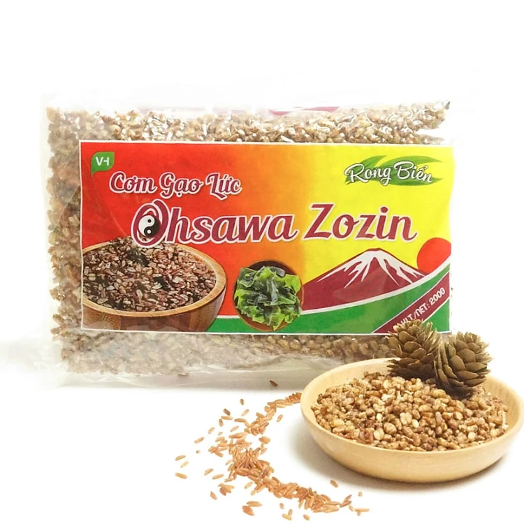 - Thành phần: Gạo lứt, muối hầm, rong biển.