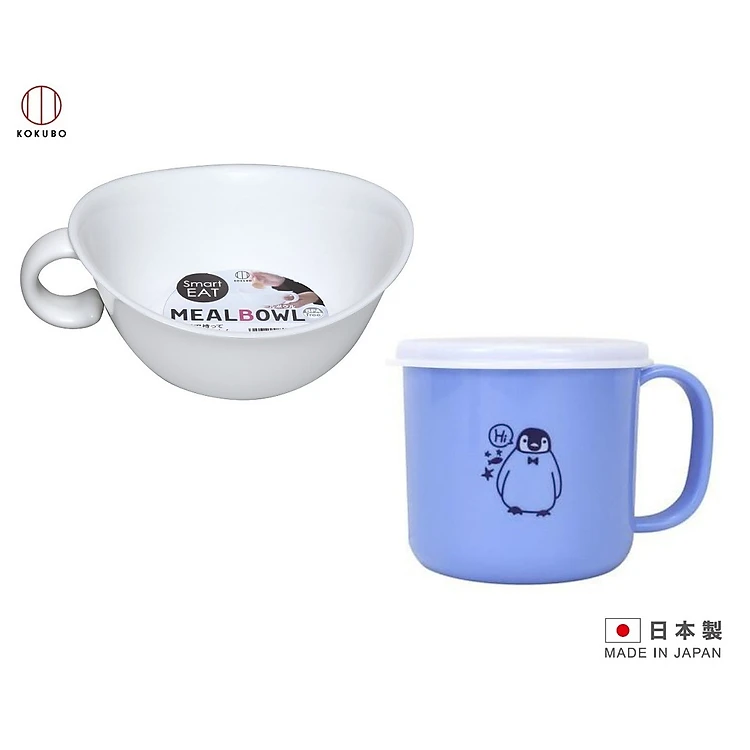 Combo 01 Bát ăn cho bé có quai cầm Kokubo Meal Bowl φ15cm + 01 Cốc nhựa uống nước Nakaya 200ml có nắp silicon mềm - Made in Japan