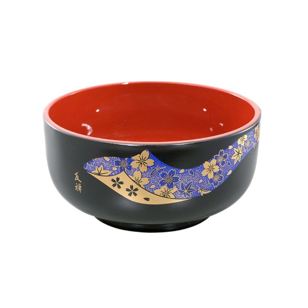 Combo 02 chén ăn cơm tròn màu đen lòng đỏ + 01 đôi đũa Tanaka 22,5cm màu đen hàng nội địa Nhật Bản