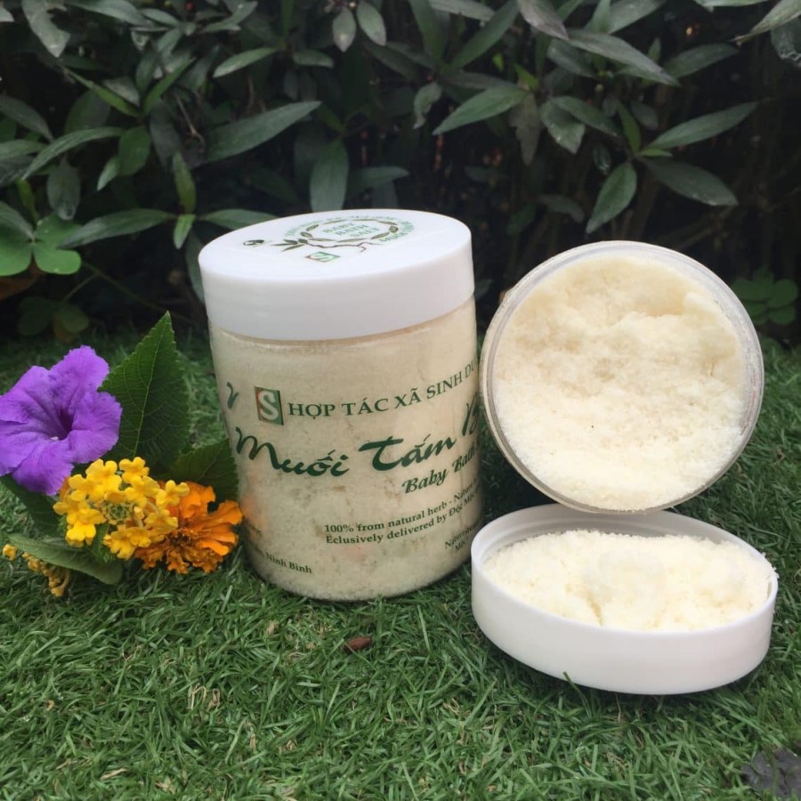 Muối tắm thảo dược sản xuất bởi HTX Sinh Dược nơi mà được hàng trăm nghìn bố mẹ tin tưởng.