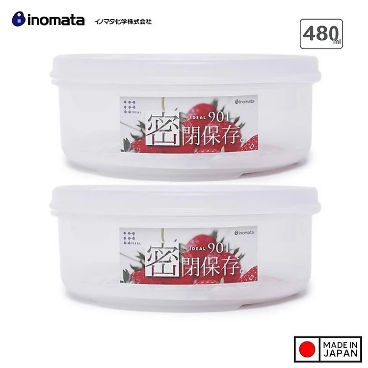 Combo 02 Hộp bảo quản thực phẩm Inomata dáng tròn, có nắp đậy 480ml - Hàng nội địa Nhật Bản | Made in Japan