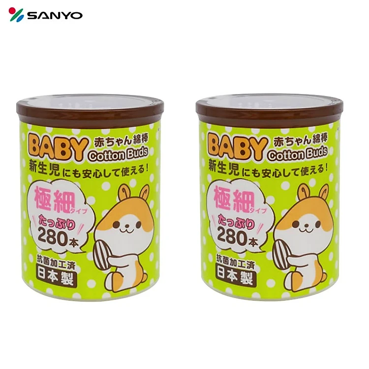 Combo 02 Hộp tăm bông ngoáy tai in hoạt hình ngộ nghĩnh cho bé Sanyo - Made in Japan