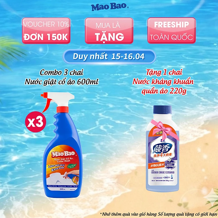 Combo 03 Chai Nước Giặt Cổ Áo Mao Bao 600ml