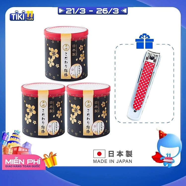 Combo 03 hộp tăm bông lấy ráy tai 180P hàng cao cấp nội địa Nhật Bản (Made in Japan) tặng bấm móng tay trẻ em 8.5cm (giao màu ngẫu nhiên)