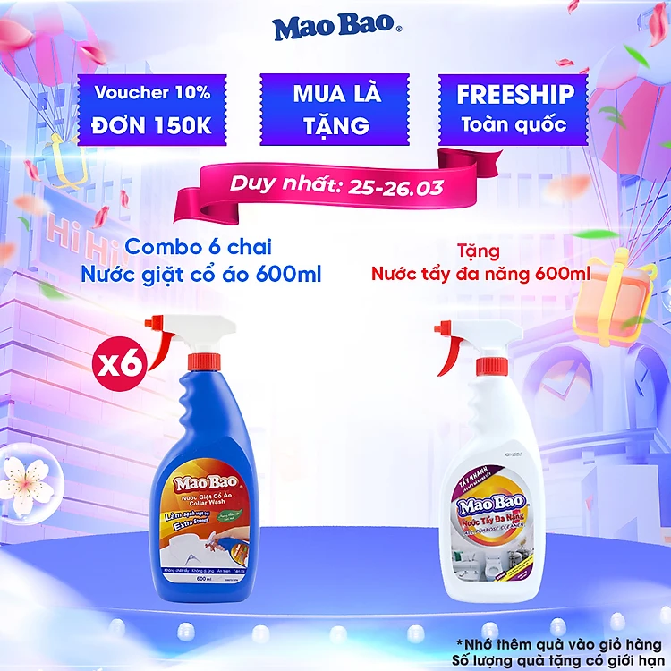 Combo 06 Chai Nước Giặt Cổ Áo Mao Bao 600ml