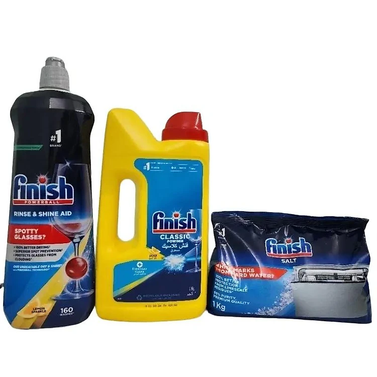 Combo (1 can Bột rửa bát Finish +Nước Bóng 800ml+Muối Finish 1.2kg) Hương chanh - ĐỨC