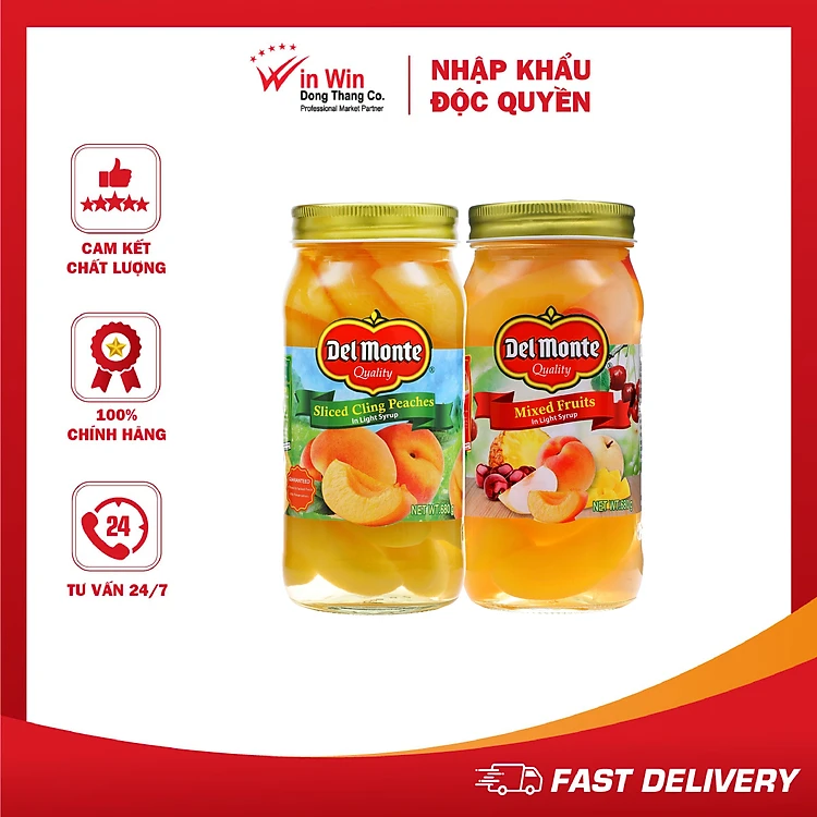 Combo 1 Đào Cắt Lát Ngâm Đường Del Monte 680g + 1 Trái Cây Hỗn Hợp Ngâm Đường Del Monte 680g (Thương Hiệu Mỹ)
