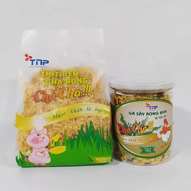 Combo 1 gói chà bông heo TNP 150g và 1 hũ gà sấy rong biển vị tỏi ớt TNP 100g