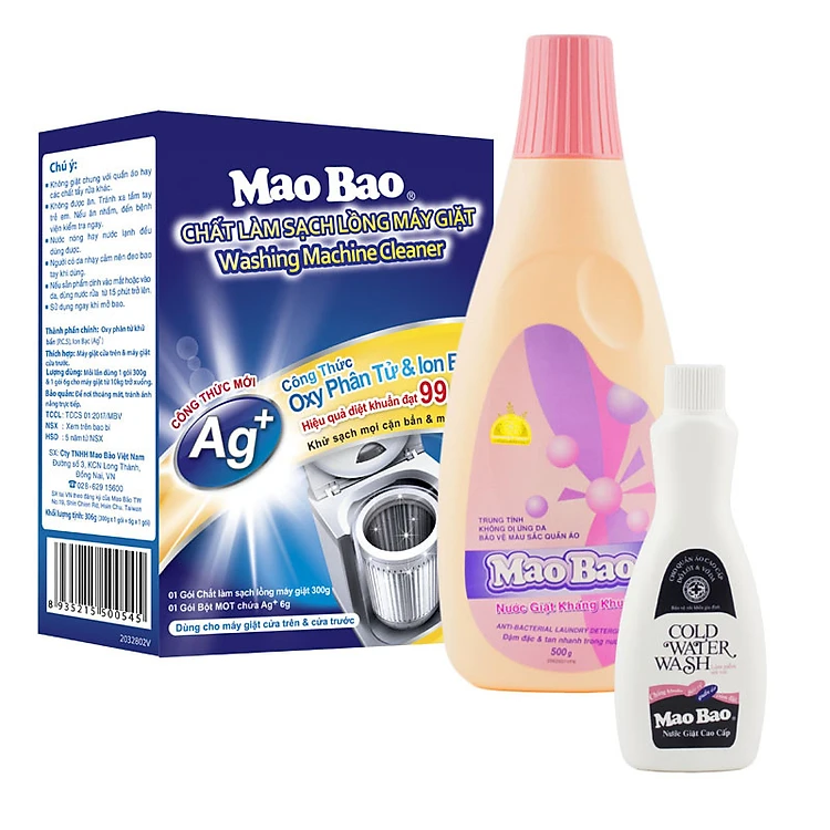 Combo 1 Hộp Chất Làm Sạch Lồng Giặt + 1 Chai Nước Giặt Kháng Khuẩn Mao Bảo 500ml - Tặng Nước Giặt Cao Cấp 82g
