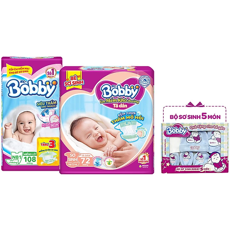 - Combo 1 Miếng Lót Bobby NB1-108 (3TDXS) + 1 Tã Dán XS72 Tặng 1 Set Newborn dành cho các bé từ 0 - 1 tháng tuổi, có thiết kế chăm sóc đặc biệt cho vùng rốn của bé sơ sinh, cùng khả năng thấm hút siêu tốc và an toàn với làn da của bé, sản phẩm có Vitamin E tăng cường bảo vệ làn da non nớt của bé.