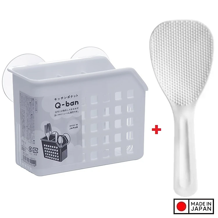 Combo 1 Ống cắm đũa thìa 2 ngăn có núm hít chân không + 1 Muôi xới cơm hàng nội địa Nhật Bản