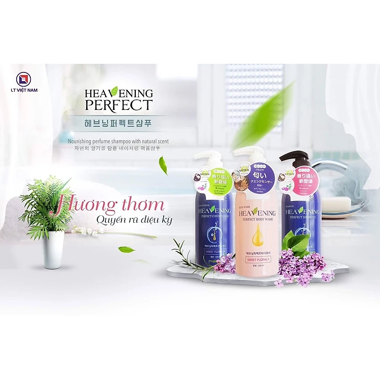 Combo 1 sữa tắm dưỡng ẩm, làm trắng da 750ml + 1 dầu gội dưỡng chất suôn mượt 750ml Heavening - nhập khẩu Hàn Quốc