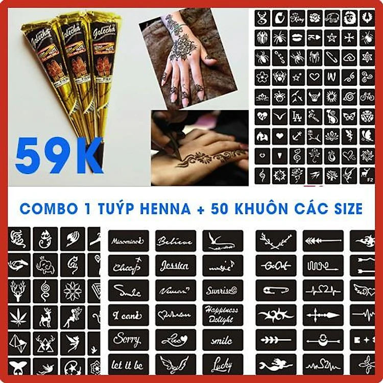 COMBO 1 TUÝP MỰC HENNA ĐEN + 50 KHUÔN( CÁC SIZE)