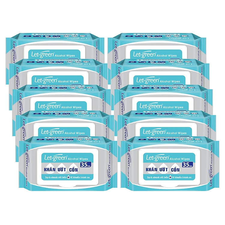 - Sử dụng khăn ướt cồn Let-Green để lau tay, tương tự như dung dịch nước rửa tay khô, lau không cần rửa lại với nước.