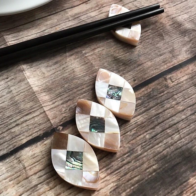 Combo 10 chiếc gác đũa Xà Cừ hình bầu dục Cẩm Bào Ngư cao cấp (CTH744) Sang trọng trên bàn ăn