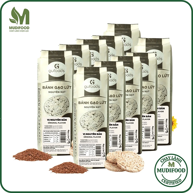 Combo 10 Gói Bánh Gạo Lứt Ăn Kiêng Gufoods Các Vị (Mỗi Gói 170g) - Dinh Dưỡng Cho Người Tiểu Đường, Ăn Chay, Ăn Vặt, Ăn Chay, Healthy