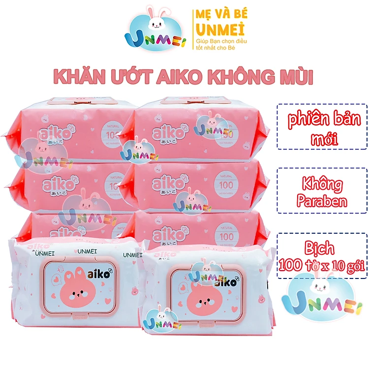 Combo 10 gói Khăn Giấy Ướt Aiko 100 tờ/gói không hương màu Hồng