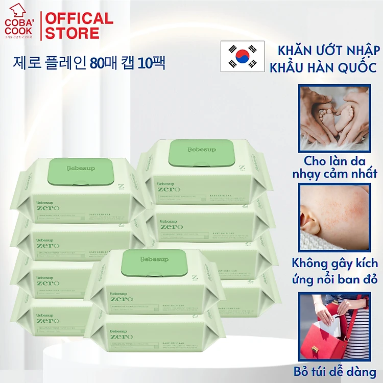 Combo 10 Gói Khăn Ướt Bebesup Zero 80 Tờ/Gói Nhập Khẩu Hàn Quốc Thương Hiệu Bebesup