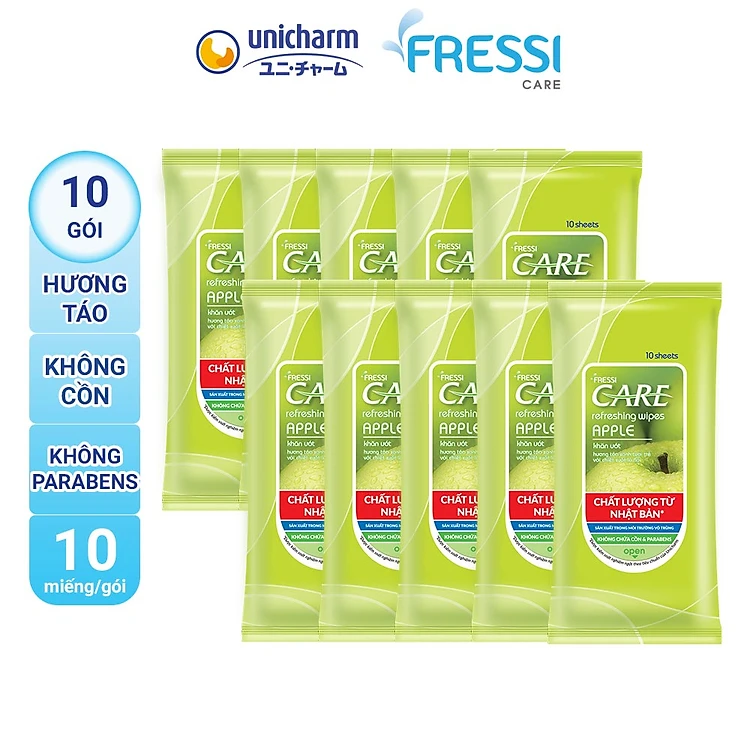 Combo 10 Gói Khăn Ướt Chăm Sóc Gia Đình Fressi Care Apple 10 Miếng/Gói