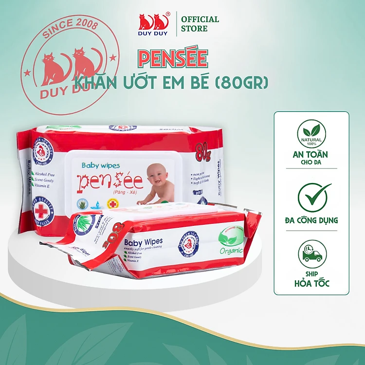 Combo 10 gói Khăn ướt cho bé Baby Pensee vải không dệt rayon cao cấp 55 miếng (13.5x20cm) không paraben