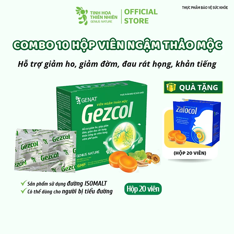 Combo 10 hộp 20 viên - Viên ngậm thảo mộc Gezcol Hỗ trợ giảm ho, giảm đờm, giảm đau rát họng, khản tiếng - Genat