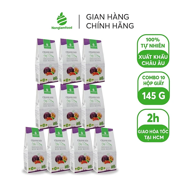 Combo 10 hộp Chanh Dây Sấy Dẻo Nonglamfood 145g | Healthy Snack | Ăn vặt văn phòng | Trái cây sấy dẻo