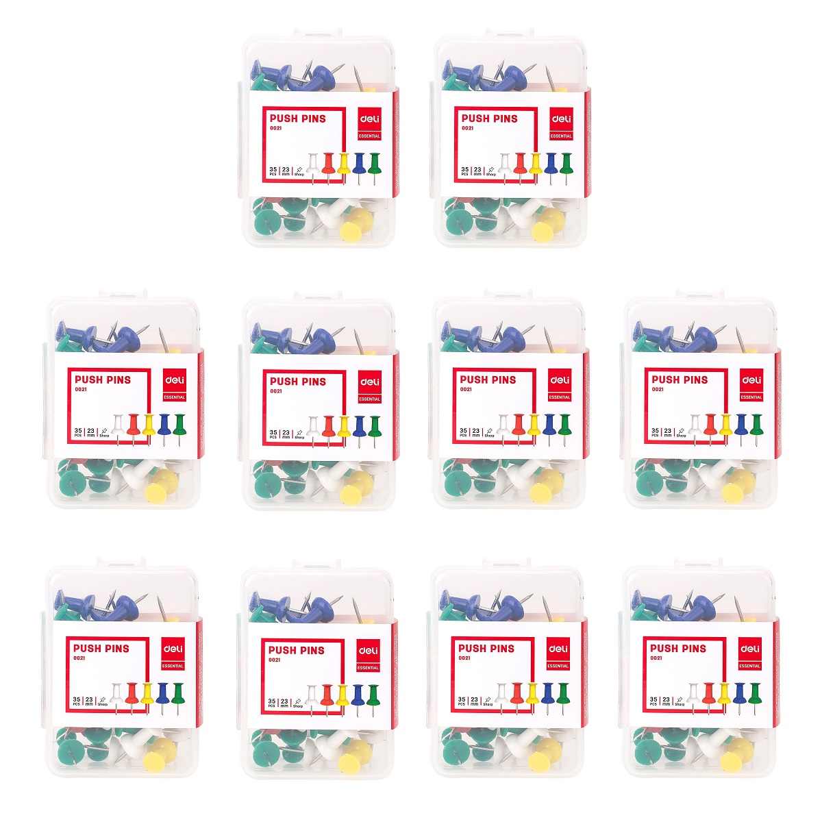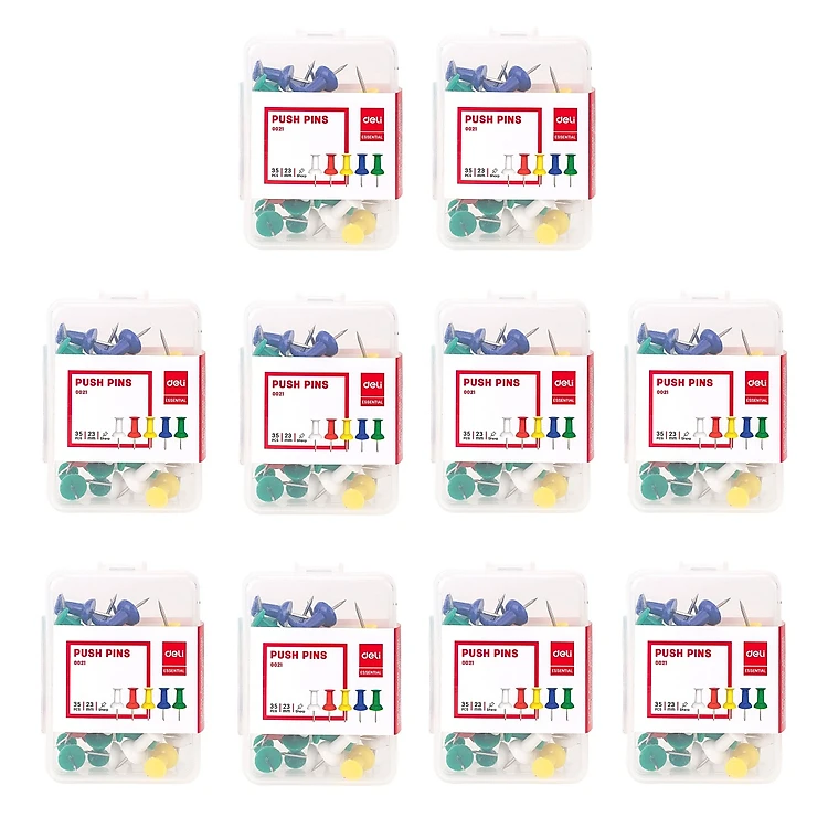 Combo 10 Hộp Ghim mũ nhựa màu Deli mã 21 kích cỡ 23mm nhiều màu dụng cụ văn phòng