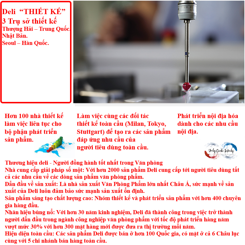 Dẫn đầu về sản xuất: Là nhà sản xuất Văn Phòng Phẩm lớn nhất Châu Á, sức mạnh về sản xuất của Deli luôn đảm bảo sức mạnh sản xuất ổn định.