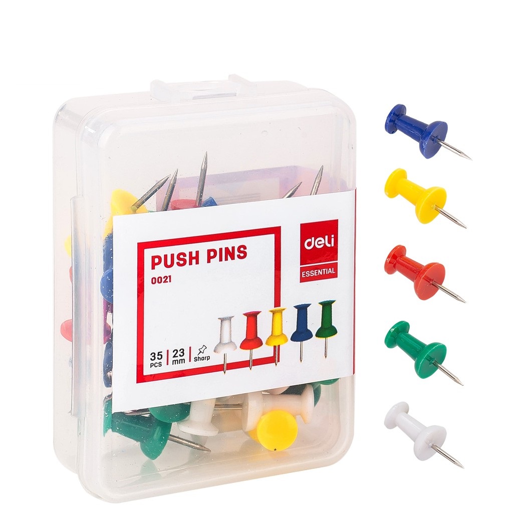 Combo 10 Hộp Ghim mũ nhựa màu Deli mã 21 kích cỡ 23mm nhiều màu dụng cụ văn phòng là dạng đinh ghim nhỏ tiện dụng, làm bằng chất liệu kim loại chắc chắn. Đầu ghim nhựa nhiều màu, bảo đảm an toàn cho người sử dụng. Kiểu thanh dài, đầu nhọn, dễ dàng ghim vào các vật dụng mềm như giấy, mút. Bao gồm 10 hộp, 35 cái/ mỗi hộp. Đinh nhọn dài khoảng 10mm.